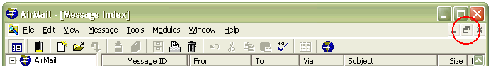 Note that when AirMail boots up the Message Index window is maximized within the AirMail window. Opening a message or the new message editor will open a new maximized window obscuring the Message Index. The Escape key will close any such windows to return to the Message Index. Click the double-page icon in the menu text bar (red circle below) to allow each of the windows to be shown and sized separately.
